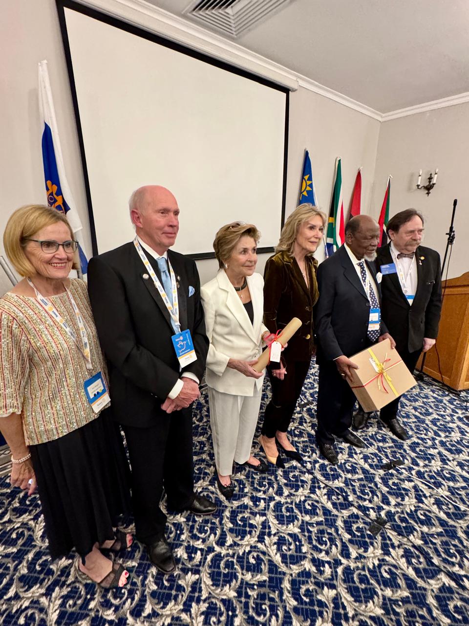 Kulminacyjnym punktem konferencji była uroczysta kolacja z udziałem wyjątkowego gościa, który wystąpił z przemówieniem do uczestników. Gościem był Joaquim Chissano charyzmatyczny, były prezydent Mozambiku, który podczas swojej prezydentury wsławił się doprowadzeniem do pokoju oraz przeprowadzeniem szeregu reform społecznych i gospodarczych swojego kraju, a wyjątkowość polegała na tym, że przebiegały wszystkie one w bezkonfliktowy pokojowy sposób co w krajach Afryki nie jest takie oczywiste. W związku z tym, że byłem jednym z wyższych rangą gości konferencji, gubernator poprosił mnie abym w imieniu wszystkich uczestników konferencji wystąpił z podziękowaniem dla Prezydenta Chissano, co uczyniłem z przyjemnością. Wspomniałem zasługi naszego gościa i przytoczyłem sylwetkę honorowego członka mojego klubu – prezydenta Lecha Wałęsy i jego zasługi dla pokojowych przemian w Polsce i Europie. Zaraz po moim wystąpieniu podbiegła do mnie pani De Klerk -wdowa po Prezydencie De Klerku – tym, który razem z Nelsonem Mandelą otrzymał pokojową nagrodę Nobla, uściskała mnie i powiedziała, że Lech Wałęsa i jej małżonek byli wielkimi przyjaciółmi i bardzo się lubili. Obydwaj byli laureatami pokojowej nagrody Nobla oraz medalu Philadelphia Liberty.