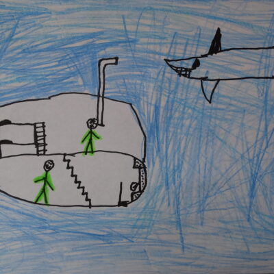 W podręcznym archiwum oglądamy inne rysunki dzieci. Aż strach pomyśleć, o czym myślały, gdy je tworzyły. Rozpoznajemy samoloty, podziemne schrony, duże zwierzę, nad którym latają samoloty – może ono miało je pokonać? Obrazy, które odzwierciedlają wojenne przeżycia dzieci.