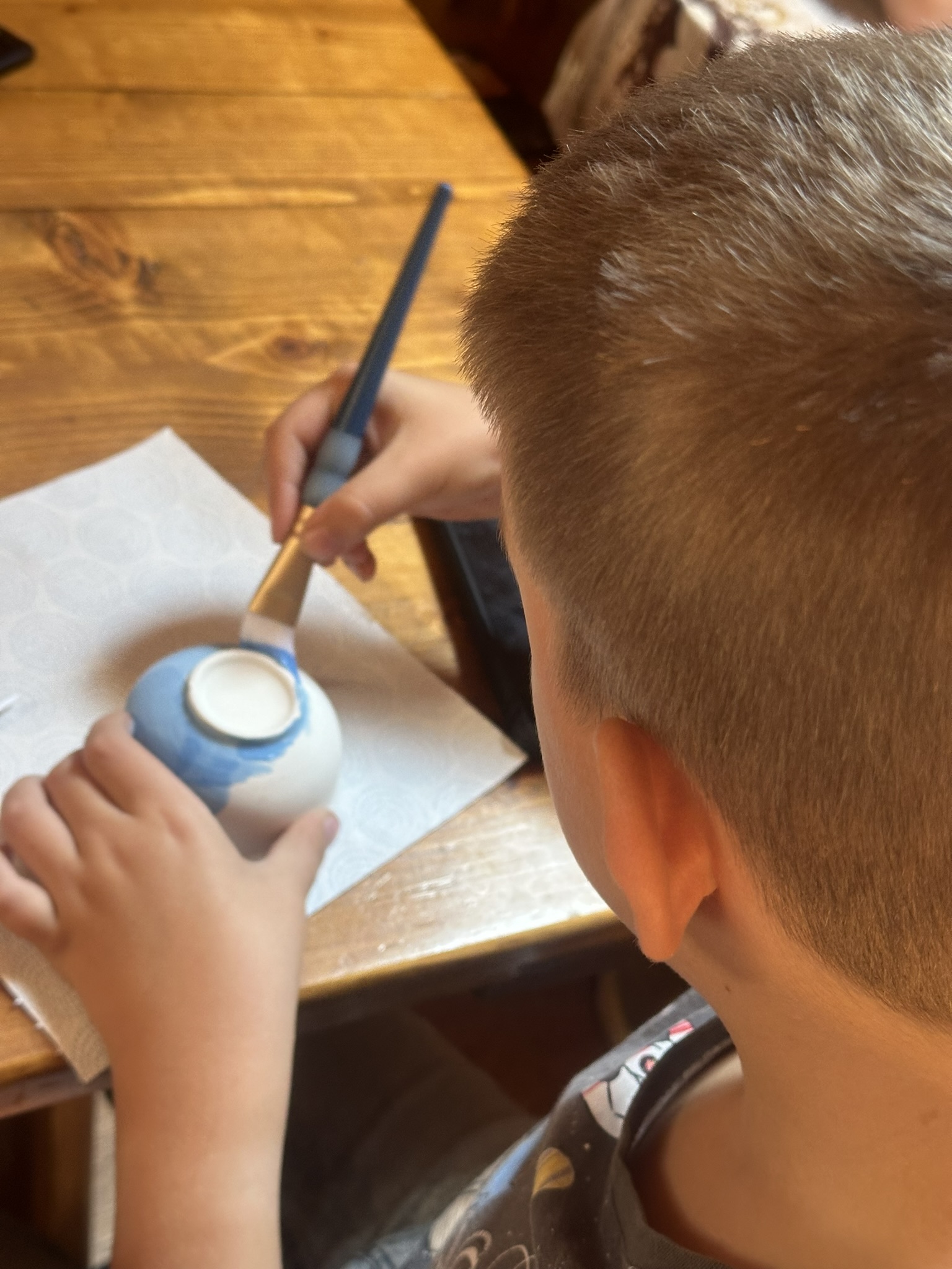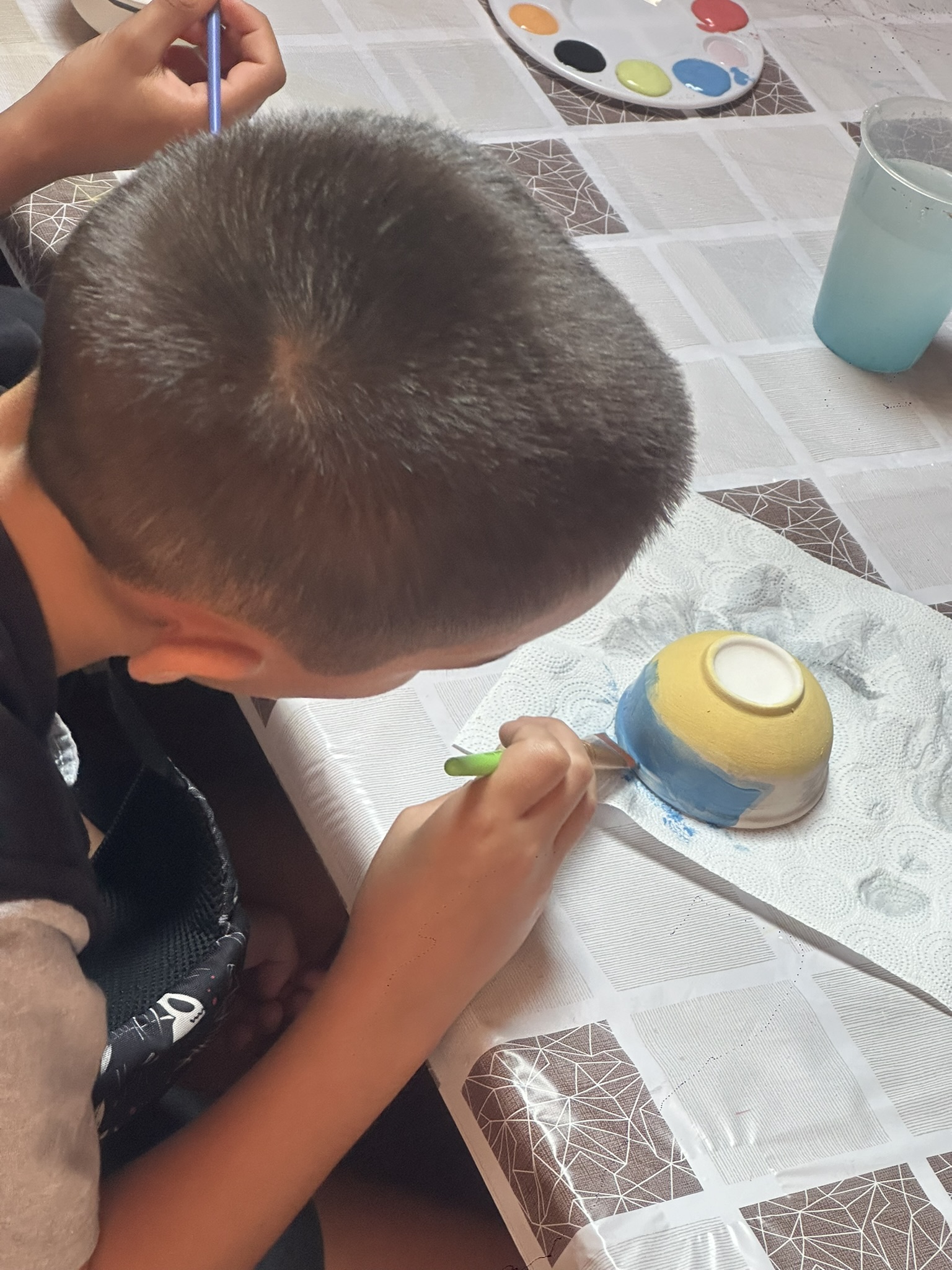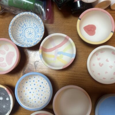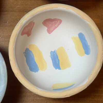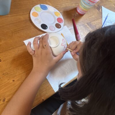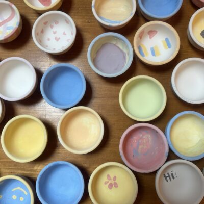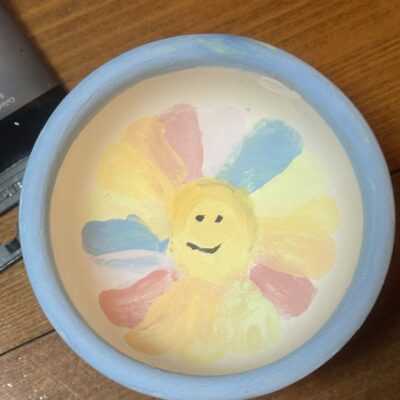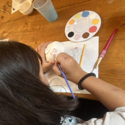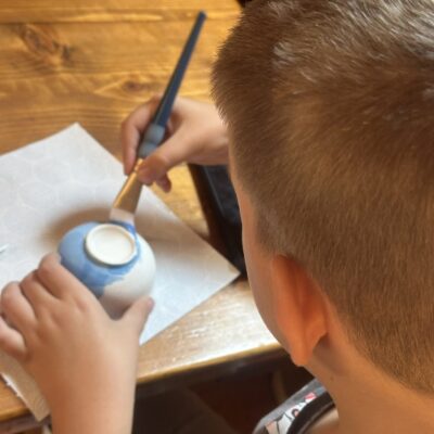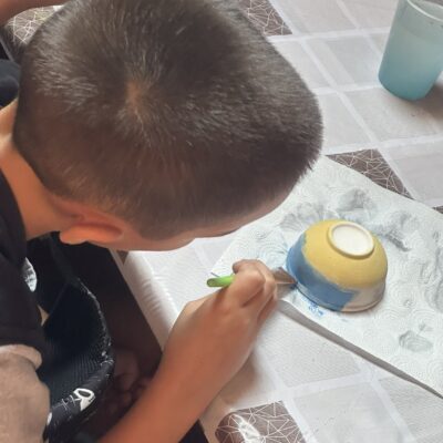 Środowy poranek maluje się kolorami dziecięcej twórczości. Małe rączki z zapałem zdobią miseczki, dominują barwy ukraińskiej flagi, kwiaty i uśmiechy. Dzieci, skupione i zaangażowane, z wielką starannością dbają o każdy szczegół.
