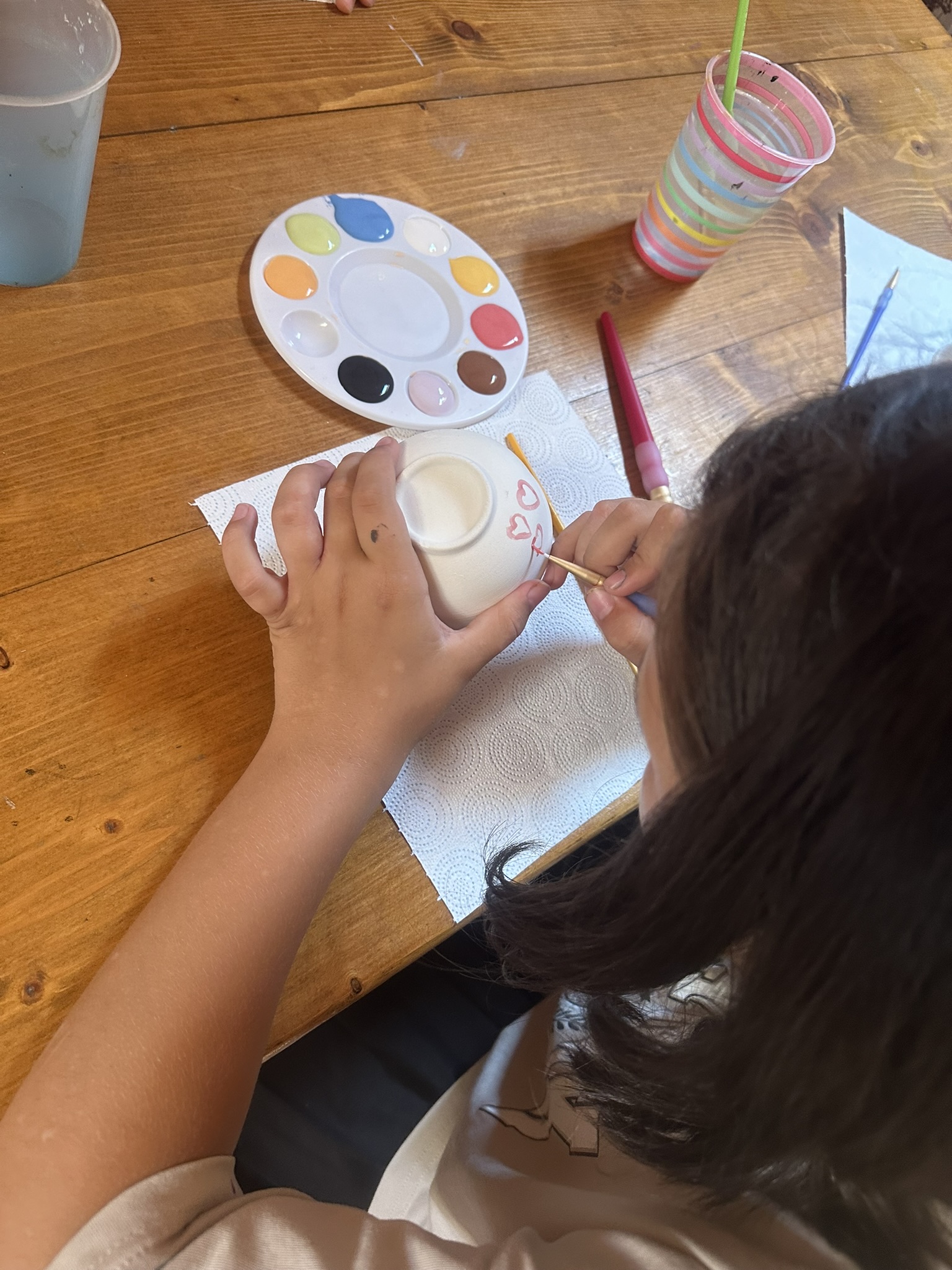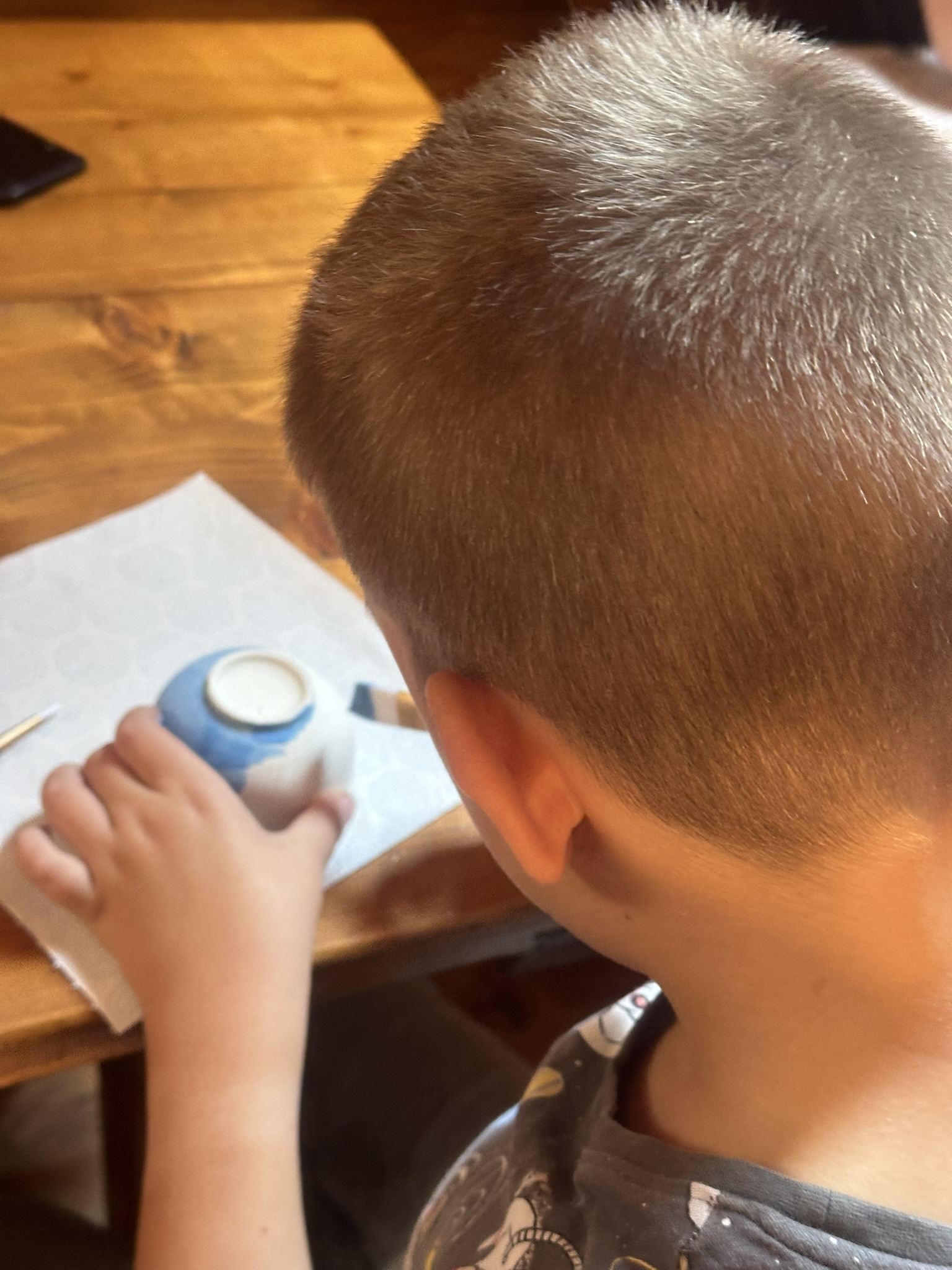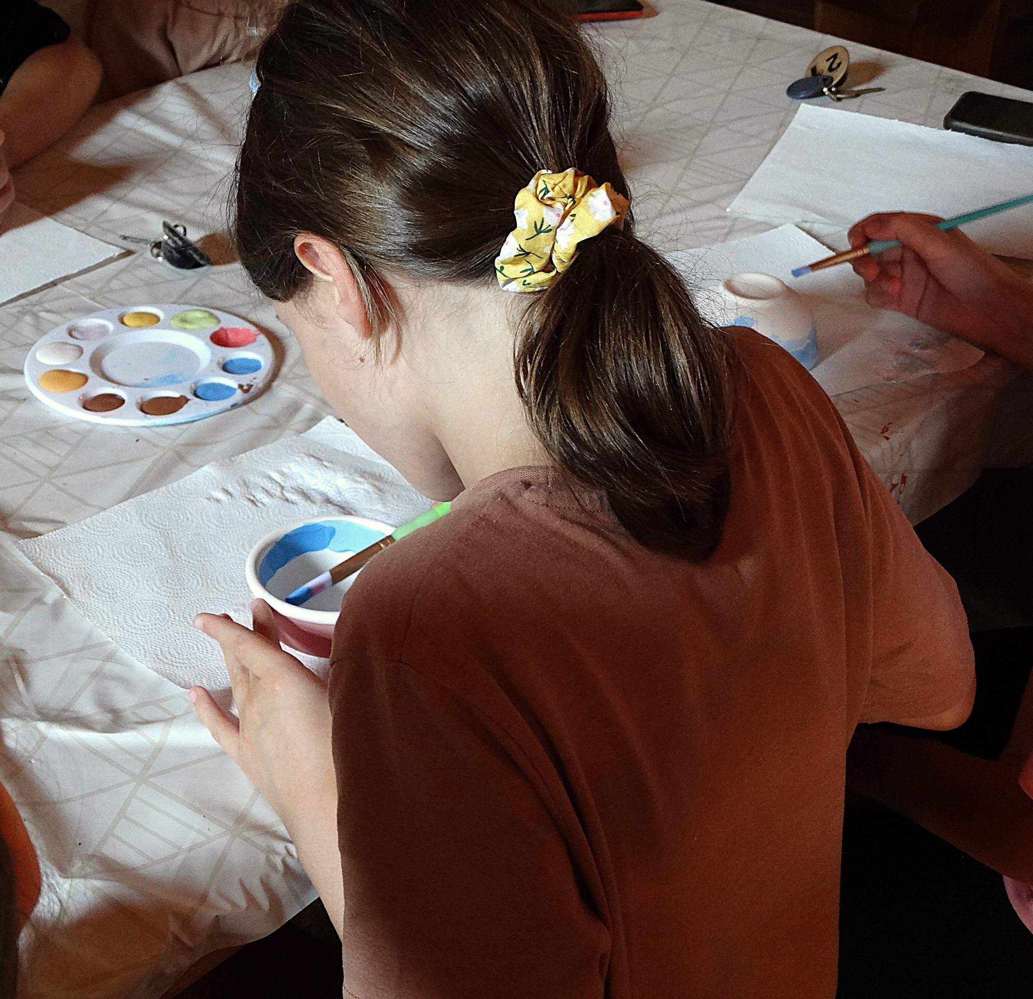 Środowy poranek maluje się kolorami dziecięcej twórczości. Małe rączki z zapałem zdobią miseczki, dominują barwy ukraińskiej flagi, kwiaty i uśmiechy. Dzieci, skupione i zaangażowane, z wielką starannością dbają o każdy szczegół.