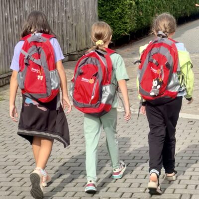Piątkowy ranek rozpoczęliśmy wspólną gimnastyką przy muzyce – do której ochoczo się przyłączyliśmy. Oprócz radosnego nieba i słońca rozświetlającego dziecięce twarze, dna dzieci czekały kolejne upominki: plecaki, czapeczki i inne upominki.