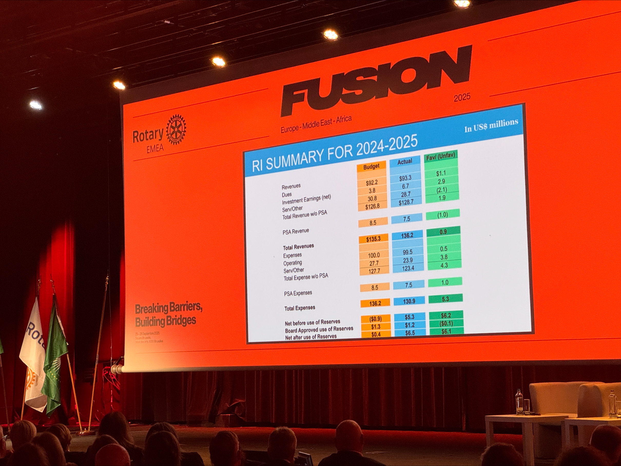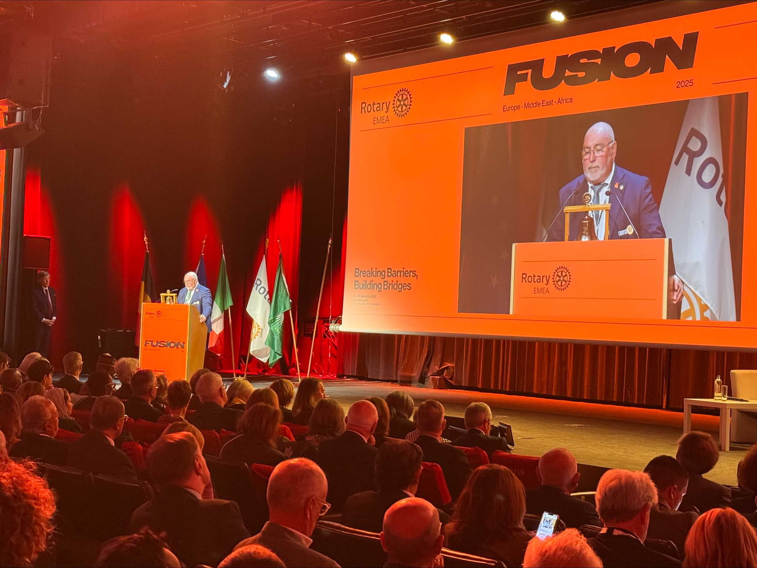 W dniach 25-28 września 2025 r. w prestiżowym Square Brussels Meeting Centre odbył się wyjątkowy Summit FUSION 2025 Rotary International. Na szczycie spotkało się około 2 tys. rotarian z Europy, Bliskiego Wschodu i Afryki razem z kadrą Rotary International i przedstawicielami Rotary Foundation oraz struktur strefowych. Spotkanie miało na celu zacieśnienie więzi międzykontynentalnych, pogłębianie wzajemnego zrozumienia oraz wzmocnienie współpracy wobec wspólnych wyzwań, takich jak zrównoważony rozwój, pokój i dobrobyt gospodarczy. Hasło Summitu „Breaking Barriers, Building Bridges” stało się symbolem nowego ducha Rotary: otwartości, dialogu i współpracy z młodszymi pokoleniami oraz społeczeństwem obywatelskim.