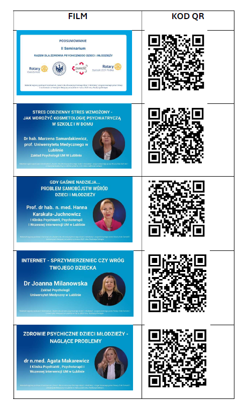 Kody QR do wykładów z Seminarium, do pobrania w formacie pdf: