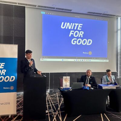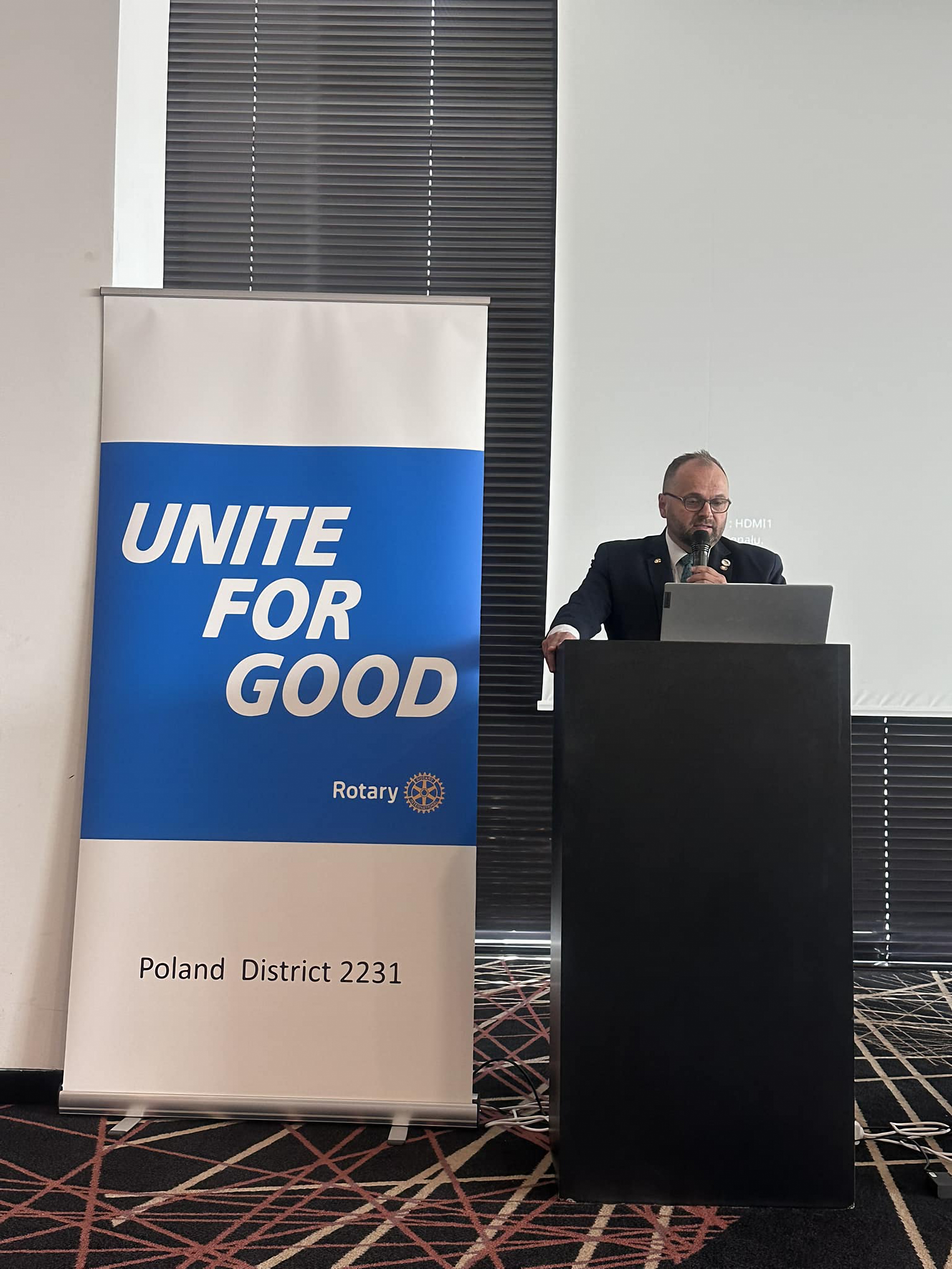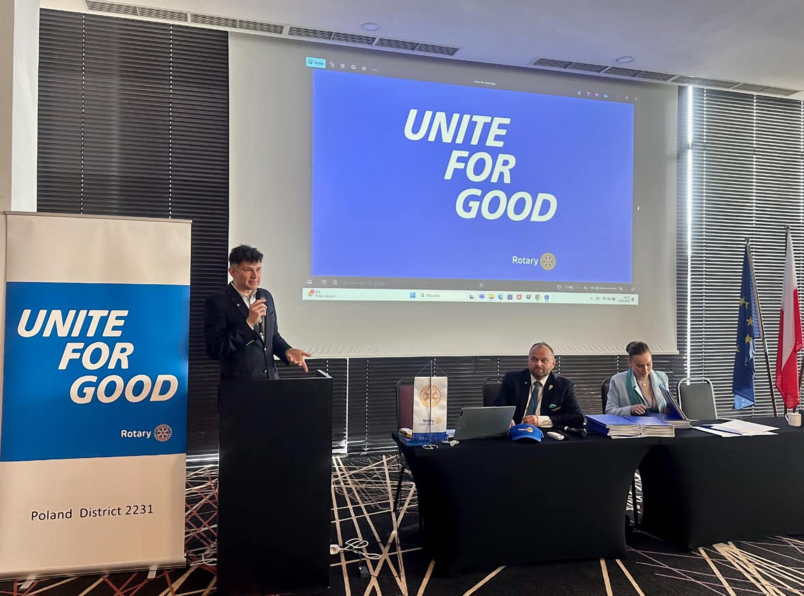 W tym kontekście, tegoroczne hasło Rotary International „Unite for good” nabiera szczególnego znaczenia. W jedności siła, a poprzez współpracę i wzajemne wsparcie możemy osiągnąć znacznie więcej niż działając w pojedynkę. To wezwanie do łączenia sił, by wspólnie czynić dobro, rezonuje z moją wizją budowania silnej i zjednoczonej społeczności Rotarian. Wierzę, że razem, czerpiąc z bogactwa naszej tradycji, otwartości na innowacje i siły partnerskich relacji, możemy skutecznie realizować naszą misję służby i pozytywnie wpływać na otaczający nas świat.