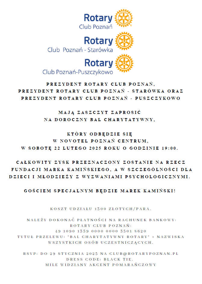 RSVP: DO 29 STYCZNIA 2025 NA CLUB@ROTARYPOZNAN.PL