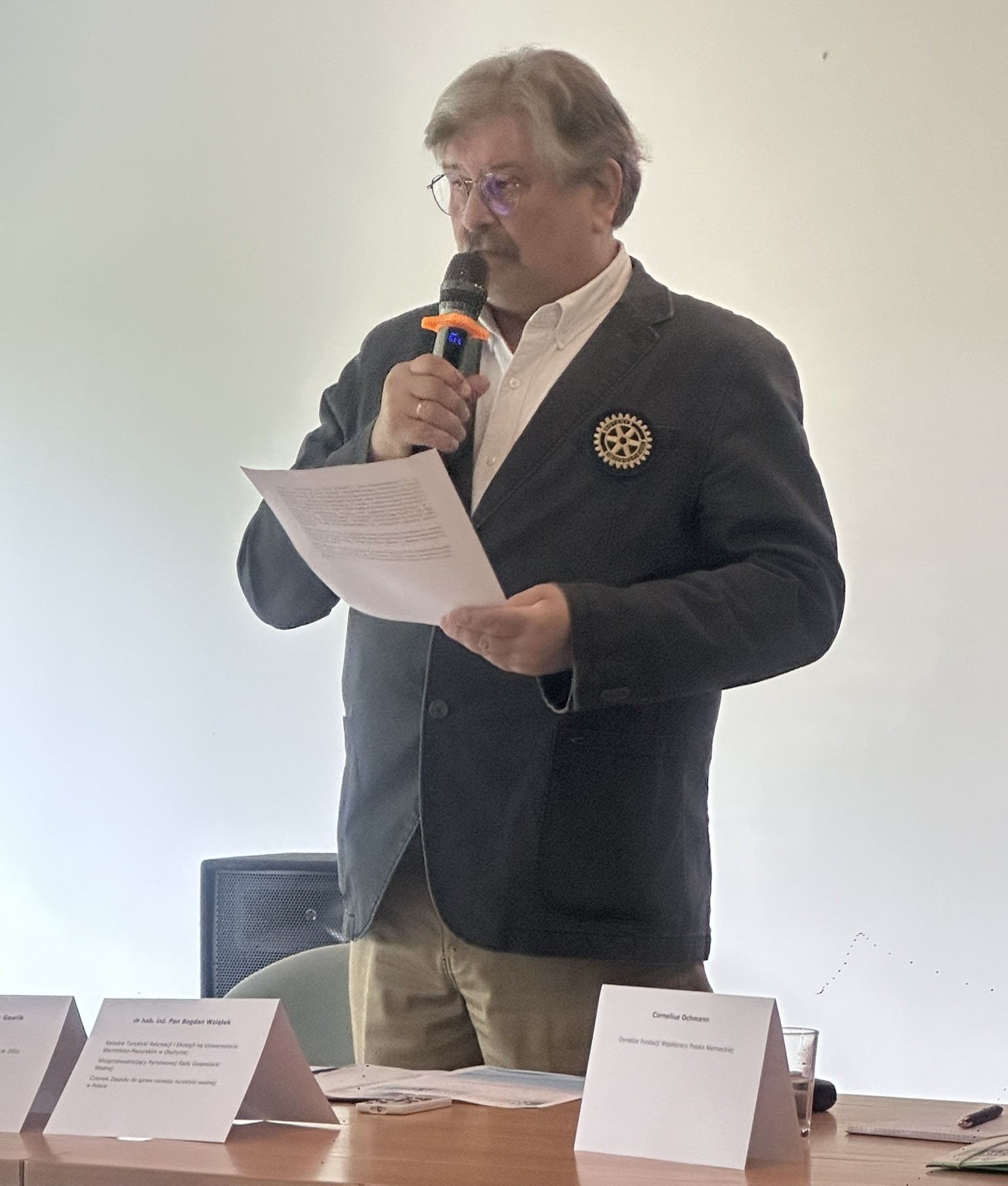Konferencję moderował Cornelius Ochmann – dyrektor Fundacji Współpracy Polsko-Niemieckiej, a otworzył ją Prezydent Rotary Club Giżycko, Andrzej Jelec, który powitał uczestników i omówił kluczowe problemy związane z zanieczyszczeniem jezior. Głos zabrała również Gubernator Dystryktu 2231, Krystyna Baj-Pawluk, podkreślając wagę inicjatywy.