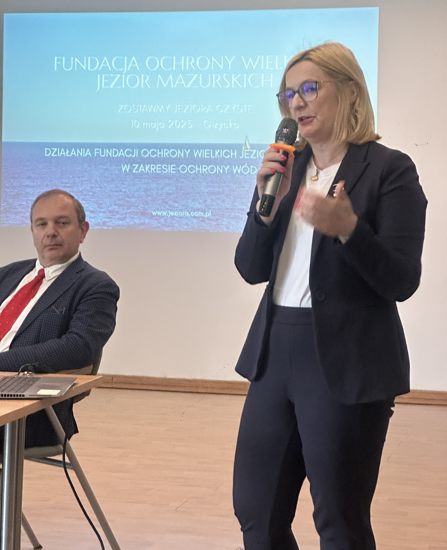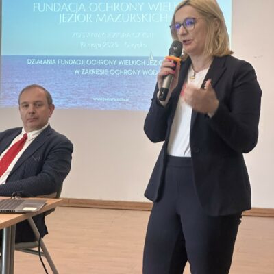 Podczas konferencji nie zabrakło również prezentacji lokalnych inicjatyw. Agnieszka Kombel-Gawlik – dyrektor Biura Zarządu Stowarzyszenia Wielkie Jeziora Mazurskie 2020 i Magdalena Fuk, prezes Fundacji Ochrony Wielkich Jezior Mazurskich (FOWJM), przedstawiły działania stowarzyszeń i fundacji na rzecz ochrony wód. Magdalena Fuk opowiadała również o innowacyjnych metodach monitoringu jezior wdrażanych przez FOWJM, w tym o wykorzystaniu autonomicznych boi pomiarowych i dronów w ramach projektów międzynarodowych.